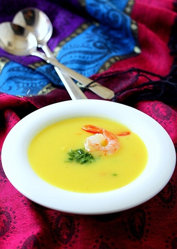 Готовим пряный зимний суп-пюре из картофеля и креветок.
