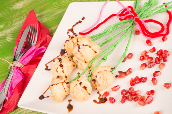 Оригинальный рецепт на День святого Валентина: булочки из слоеного теста с творожной начинкой в виде роз.
