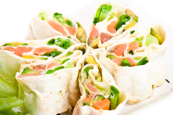Закуска из лаваша с авокадо, слабосоленой рыбой, сливочным сыром и зеленью специально к 8 марта.