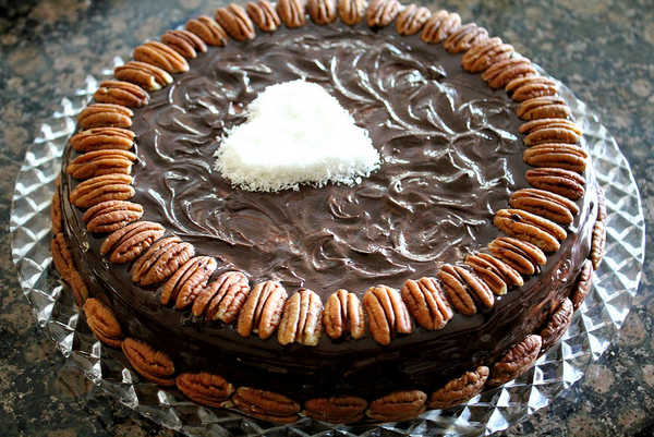 3. Приготовить шоколадную глазурь и полить застывшее суфле. По желанию украсить готовый торт орехами.