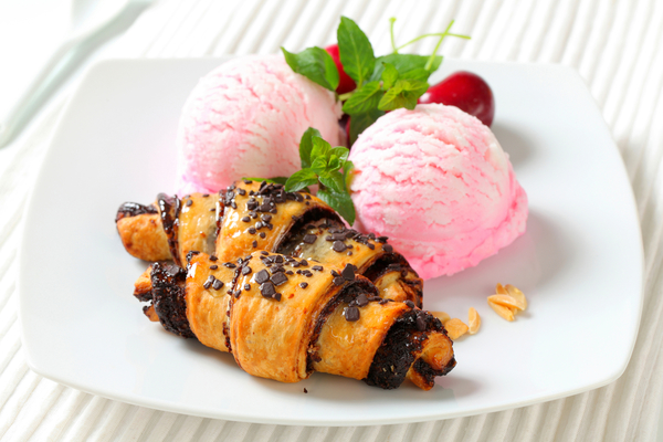 Домашняя хлебопечь значительно упростит процесс приготовления дрожжевых рогаликов с шоколадной начинкой.