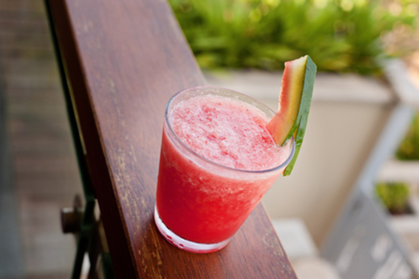 1. Нужно смешать арбуз, клубнику, лимонный сок, сахар и воду в блендере. Измельчить это все до получения однородной массы.