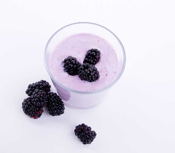 Сливочный, сладкий, вкусный молочный коктейль с ежевикой выглядит потрясающе благодаря свежей спелой ягоде яркого фиолетового цвета!