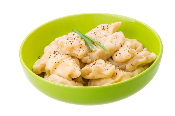 5. Разложить на лепешки приготовленную начинку. Сложить лепешки пополам и хорошо скрепить края. Отварить вареники в кипящей подсоленной воде. Шумовкой выложить их на блюдо и подавать со сметаной.