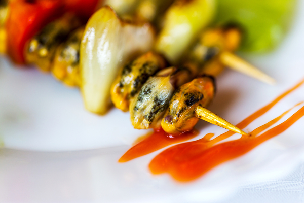 - Подготовь к жарке мангал, нанижи мидии на шампура или деревянные шпажки и жарь их с двух сторон на костре около 5 минут.