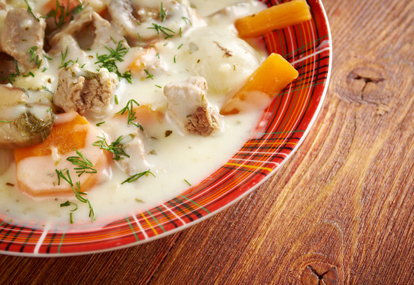 Готовим телятину в сливочном соусе с шампиньонами, морковью, луком и белым вином.
