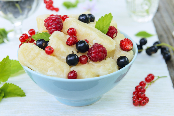 4. Посыпать ленивые вареники ягодами и сахаром.