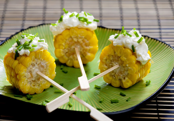 Молодую кукурузу можно просто отварить и посыпать солью, а можно приготовить из нее аппетитную закуску с зеленью и сливочным сыром специально к летней вечеринке.