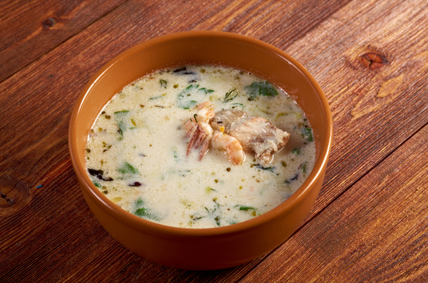 4. Добавить рыбу в кастрюлю с картофелем, влить сливки. Варить на слабом огне примерно 10 минут.