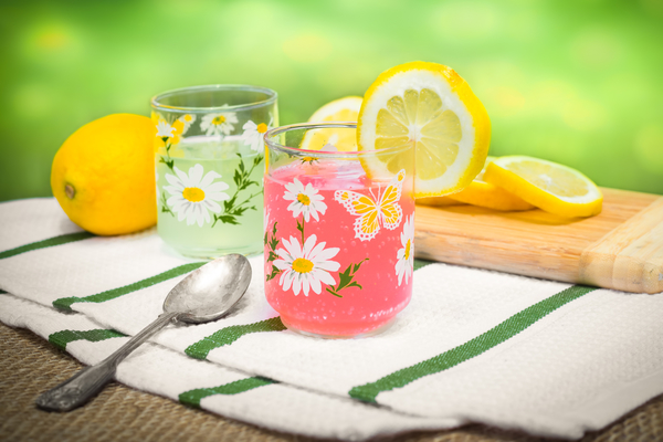 Лимонад с добавлением клюквенного сока имеет красивый розовый цвет и отлично освежает в жаркие летние дни.