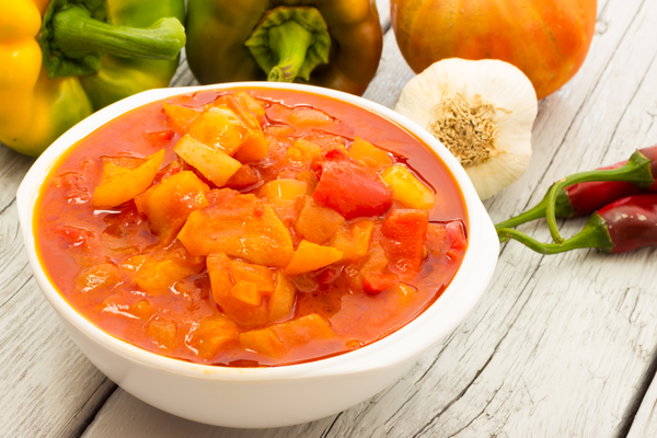 Летнее итальянское блюдо, которое представляет собой тушеный перец с помидорами, чесноком и базиликом.