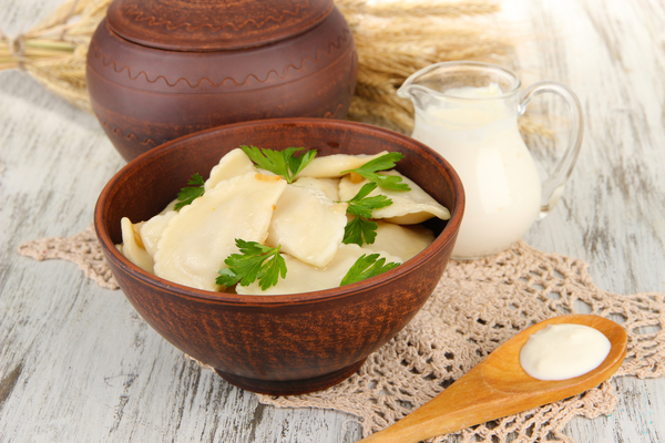 5. Готовить вареники в подсоленной воде около 5-7 минут. Подавать со сметаной.
