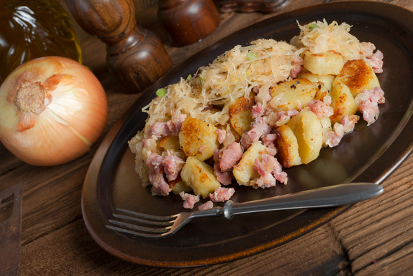 Октоберфест: картофельные клецки с грудинкой и кислой капустой