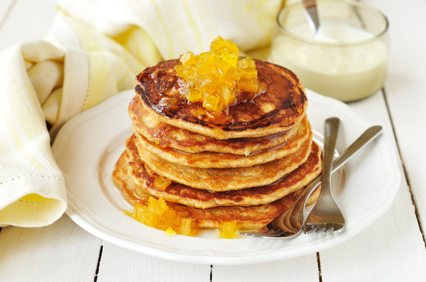 3. Разогреть сковороду с растительным маслом. Ложкой выкладывать тесто и жарить оладьи до золотистого цвета. Подавать с вареньем или сметаной.