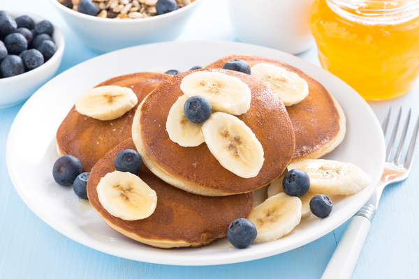 5. Подавать оладьи с черникой и кусочками банана.