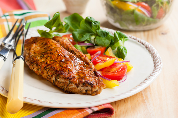 Запеченное куриное филе с овощным салатом