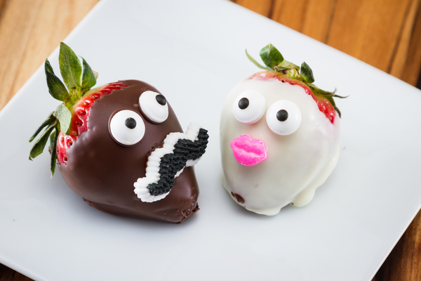 5. Узор на клубнике можно нарисовать остатками шоколада, либо же прикрепить к ягодам маленькие конфетки, пока шоколад еще не застыл.