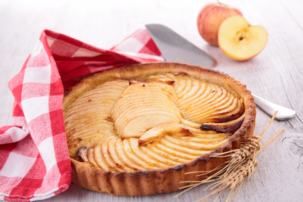 Рецепт французского пирога из хрустящего рубленого теста с яблочно-коричной начинкой. Этот десерт можно подавать с шариком ванильного мороженого.