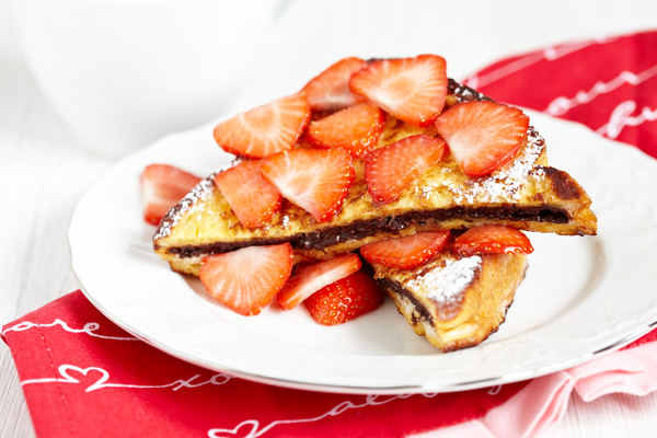 Французские тосты с шоколадно-ореховой пастой и свежими ягодами станут отличным завтраком в День святого Валентина.