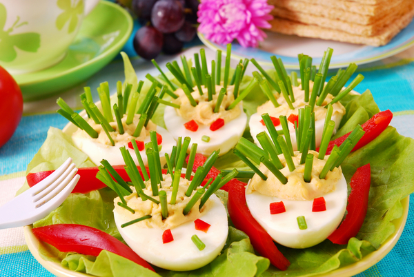 Пасху в 2015 году будут праздновать 12 апреля. Приготовь ребенку интересную пасхальную закуску: фаршированные яйца в виде забавных ежиков.