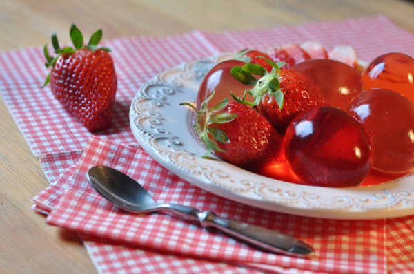 3. Фруктовое желе перемешать с желатином, залить горячей (не кипящей) водой и нагреть на водяной бане до полного растворения.