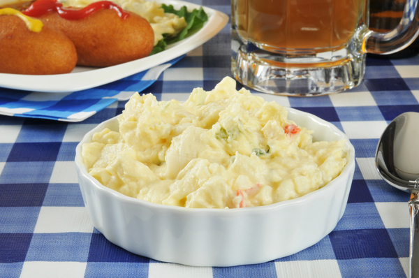 Для картофельного салата лучше выбирать неразваривающийся или частично разваривающий картофель, поскольку кусочки должны быть цельными, а не похожими на пюре.