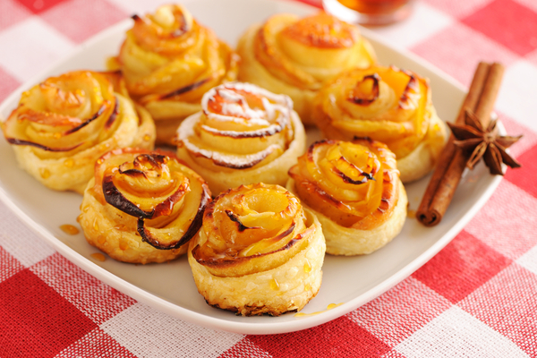 Яблочные розочки в слоеном тесте