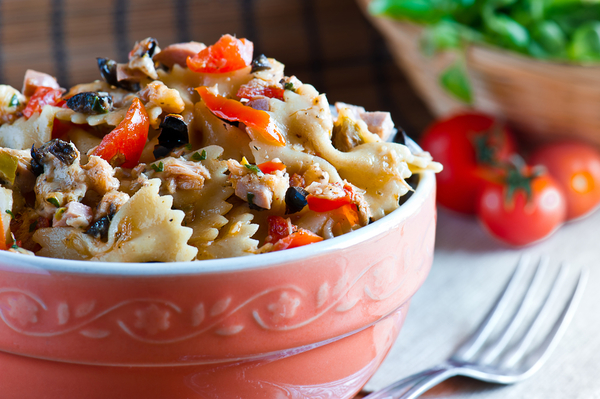 Простой в приготовлении рецепт пасты с тунцом в средиземноморском стиле. Для него желательно использовать короткие виды макарон.