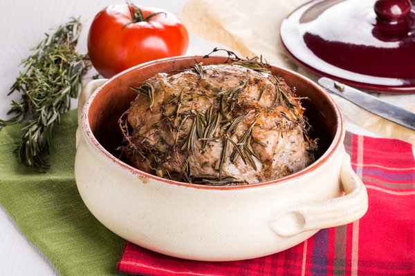 Свиная корейка с пряными травами и чесноком, приготовленная по этому рецепту, получается сочной и слегка розовой в центре.