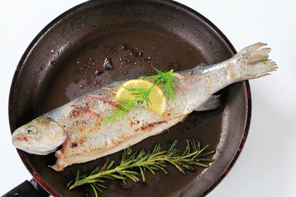 Форель, запеченная целиком на гриле вместе с лимоном и розмарином – прекрасный рецепт для вылазки на природу.