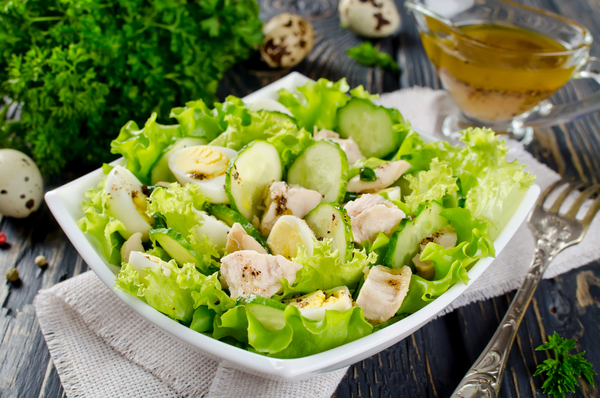 4. Соединить все ингредиенты салата в миске, полить соусом винегрет и приправить по вкусу.