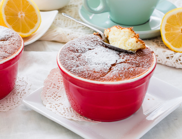 Воздушное лимонное суфле готовится в небольших порционных формочках. Подавай его теплым на завтрак или десерт.