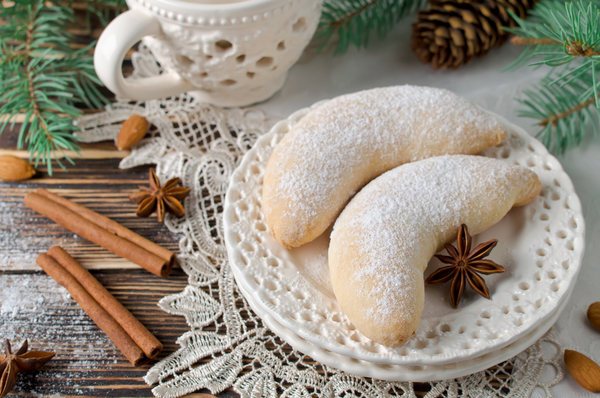 5. Осторожно обвалять еще теплые полумесяцы в смеси обычного и ванильного сахара.