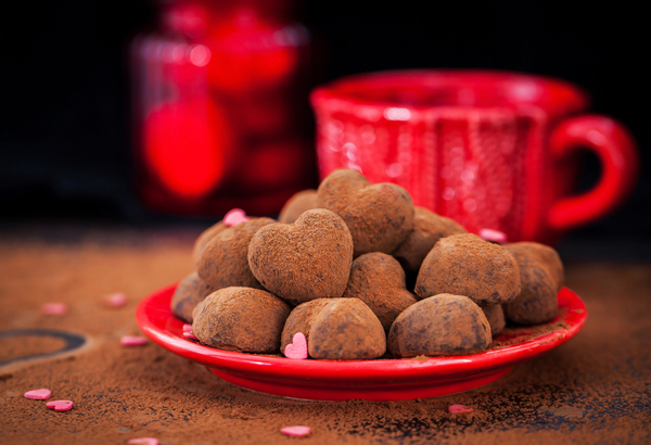 Шоколадные трюфели с мятным вкусом на День святого Валентина из молочного шоколада. Это прекрасное дополнение к чашечке горячего кофе.