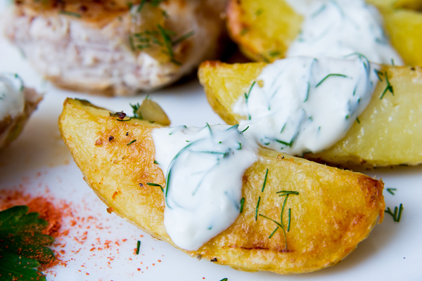 Пряный жареный картофель по-мексикански подается вместе со сметаной. Это отличный гарнир к мясным и рыбным блюдам.