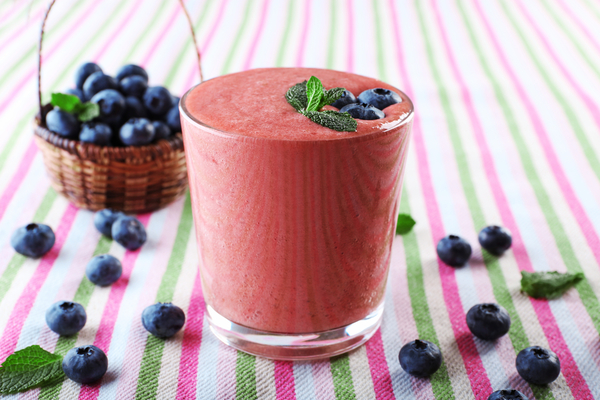 1. Чернику и клубнику сложить в блендер, влить молоко и йогурт.