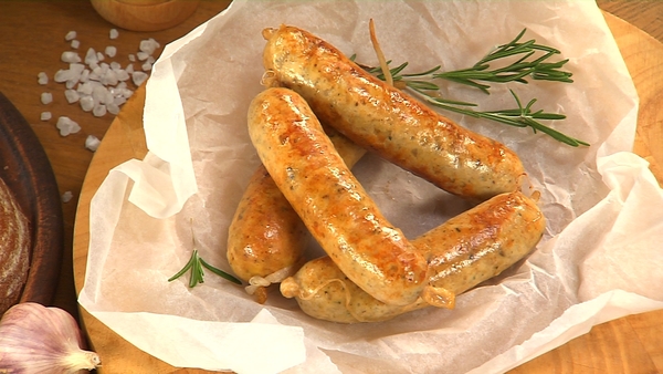 5. Положить отваренные колбаски на сковороду гриль. Поджарить до образования полосочек. Подавать с гарниром и зеленью.