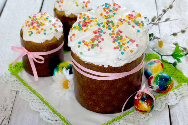 4. Отправить куличи в разогретую до 200 С градусов духовку. Время выпечки зависит от размера куличей, от 30 минут до часа. Готовность проверить зубочисткой.