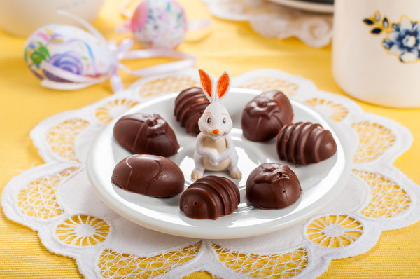 2. Набирая примерно четверть совка для мороженого, сформировать конфеты в виде пасхальных яиц. Должно получиться около 10-12 штук. Выложить их на пергаментную бумагу и поставить в холодильник, чтобы смесь застыла.