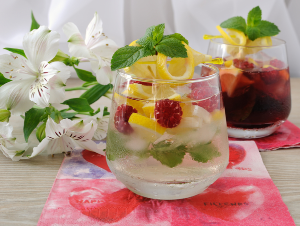 3. Перемешать, перелить в стаканы. Подавать малиновый лимонад вместе со льдом и веточками свежей мяты.