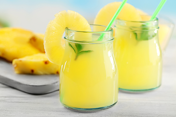 Рецепт вкусного домашнего лимонада из ананасового сока и мяты. Взрослые могут добавить в стаканы с напитком немного водки или рома.