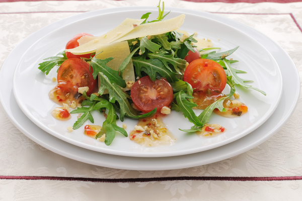 Салат из рукколы, помидоров и пармезана