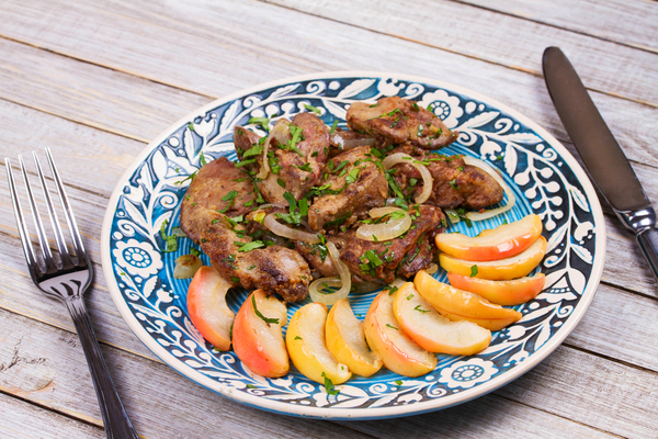 Жареная печень с яблоками и луком