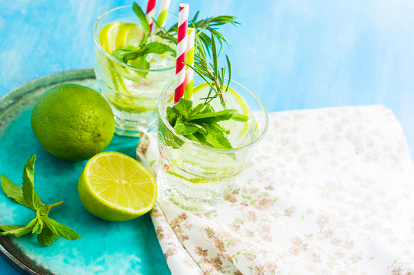 5. Украсить готовый коктейль листиками мяты и кружочками лайма.