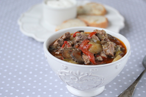 Тушеные баклажаны с мясом и помидорами