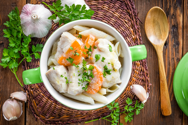 9. Подавать соус вместе с отваренной пастой, украсив кусочками моркови и рубленой петрушкой.