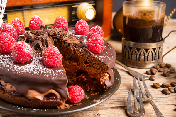 Шоколадный торт с малиной