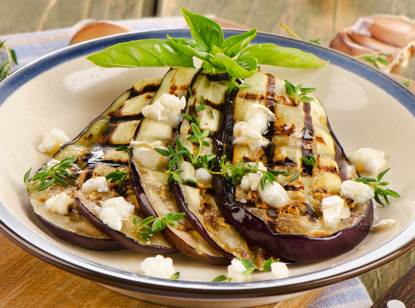 5. Подавать баклажаны на гриле, украсив базиликом и фетой.