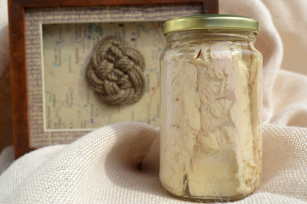 4. Залить оливковым маслом на 5 мм выше кусочков рыбы. До верха горлышка банки должно оставаться больше 1 см. Дать постоять некоторое время, убрать обратной стороной ложки воздушные пузыри. Влить еще немного масла, если нужно.