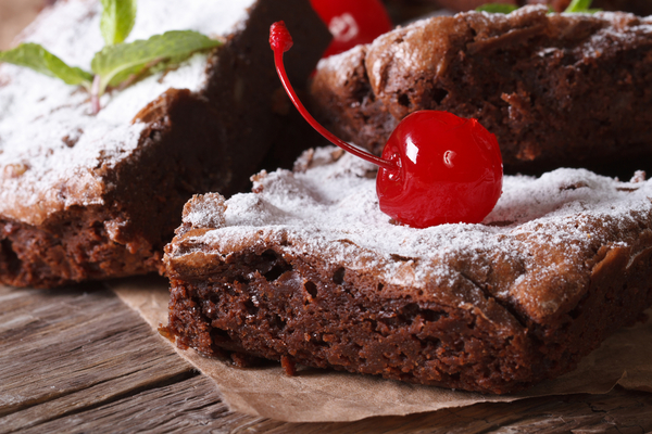 8. Готовый пирог по желанию можно украсить сахарной пудрой и коктейльными вишнями.